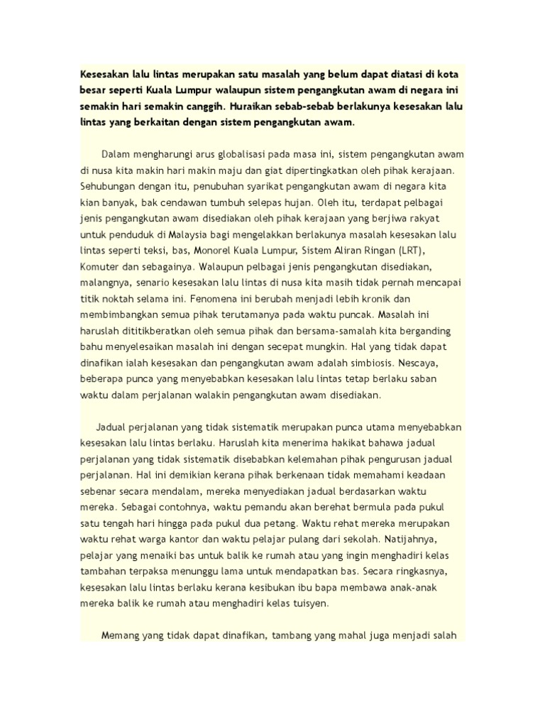 PUNCA KESESAKAN JALAN RAYA By Jovie J - 11282019 Hello. Pertambahan pesat penduduk bandar ini berpunca daripada penghijrahan penduduk dari kawasan luar bandar. Oleh itu semua pihak perlu bekerjasama bagai aur dengan tebing untuk mencari keputusan yang seimbang agar.